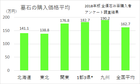 最後に墓石の費用ですが、大きさや墓石の材質等で変わってきますが、地域別の購入価格の平均は以下になります。